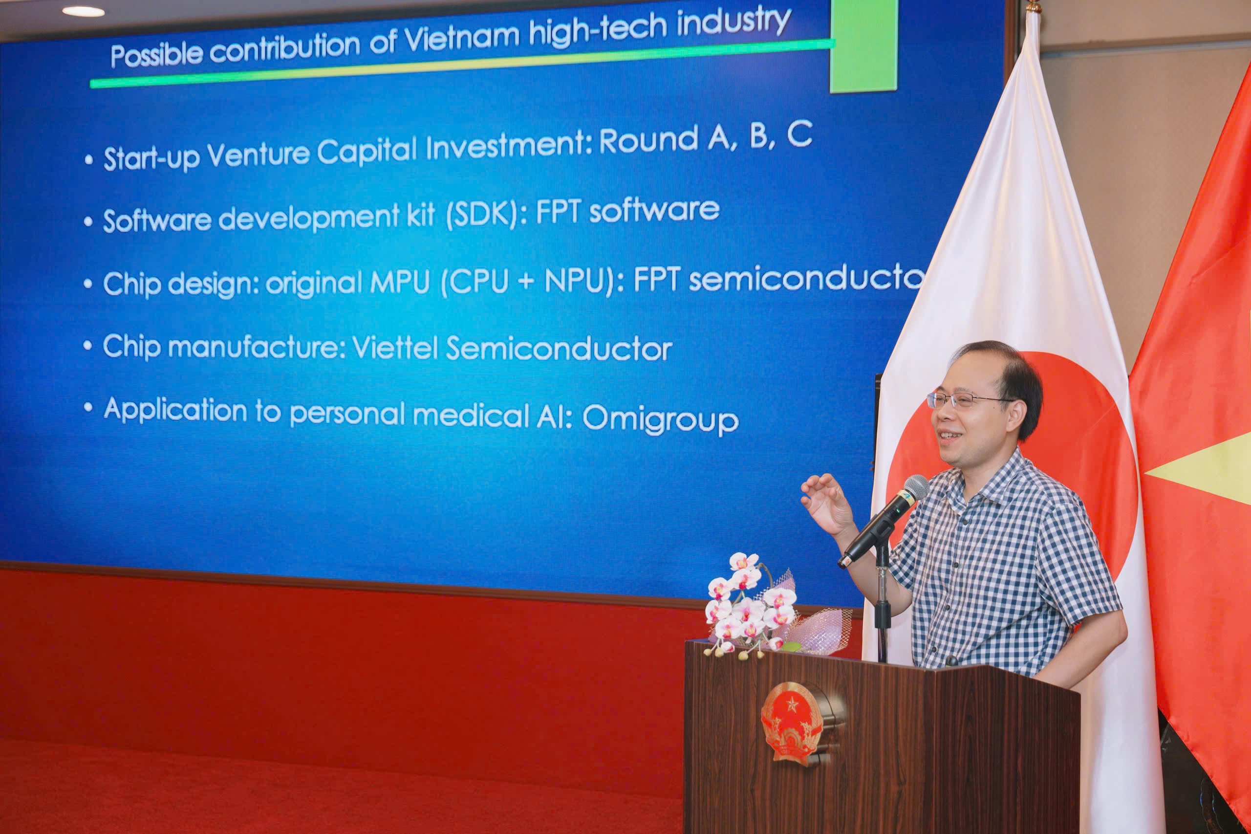 Đại diện Bộ Khoa học và Công nghệ đã trình bày định hướng phát triển các công nghệ chiến lược, kêu gọi sự tham gia của giới khoa học và doanh nghiệp Việt Nam trong các dự án nghiên cứu và phát triển trọng điểm, đặc biệt nhấn mạnh vai trò của chip chuyên dụng trong an ninh và kinh tế số. Giáo sư Phạm Nam Hải (Đại học Khoa học Tokyo) giới thiệu dự án chip SOT-MRAM Edge AI, mở ra cơ hội hợp tác quốc tế trong lĩnh vực nghiên cứu, sản xuất và ứng dụng chip chiến lược cho Việt Nam.